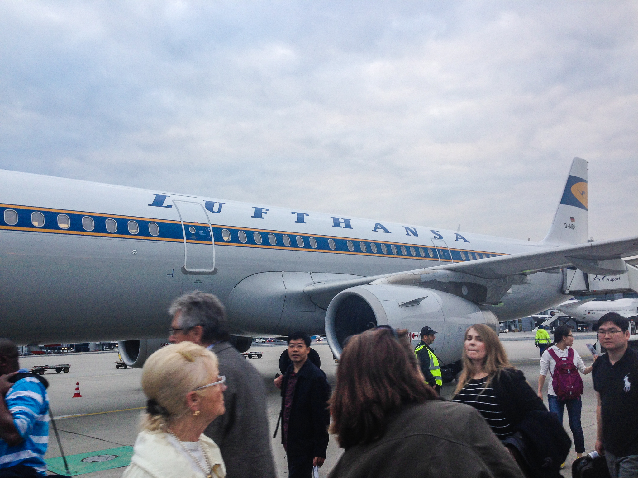 Anlässlich des bevorstehenden 60sten Geburtstages der Lufthansa gab es einen schicken, ganz neuen und mit Retro-Look beklebten Flieger, der mit reichlich Sitzabstand und Komfort punktete. So kann die Reise ja nur gut beginnen. Oder doch nicht. Aufgrund des dichten Flugverkehrs in Lissabon, mussten wir rund eine Stunde am Vorfeld warten, bis wir endlich starten konnten. Nun gut, dank guter Musik und einer Runde Schlaf ging die Zeit auch hinüber.