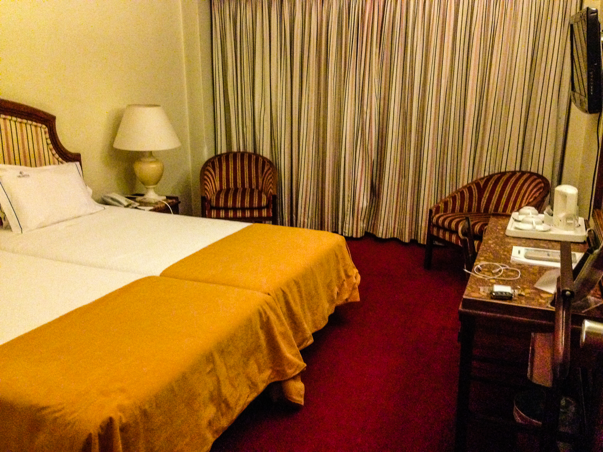 Der Anflug auf Lissabon war gigantisch. Wir mussten einige Male über die Stadt kreisen, bevor wir endlich landen konnten. Dank klarem Wetter und Tiefflug war die Aussicht echt phänomenal. Als wir landeten war es schon 23:30, also nur mehr 30 Minuten, die der Sixt-Schalter offen hatte. Das könnte knapp werden, hilft aber nix. Als dann noch das Gepäck zum falschen Teil des Flughafen gebracht wurde und ich weitere 1,5 Stunden auf meinen Koffer warten musste wurde es – salopp gesprochen – schon etwas fad. Sixt hatte schon lange zu, aber da ich nicht der einzige Kunde war, der noch sein Auto haben wollte, konnten wir auch ausserhalb der Öffnungszeiten noch zum Schalter. Mit 40€ Aufpreis. Was solls: Auto abgeholt und Hotel gesucht, das ich dann nach zwei auch irgendwann einmal erreicht hatte. Hier bin ich nun also, in Portugal.