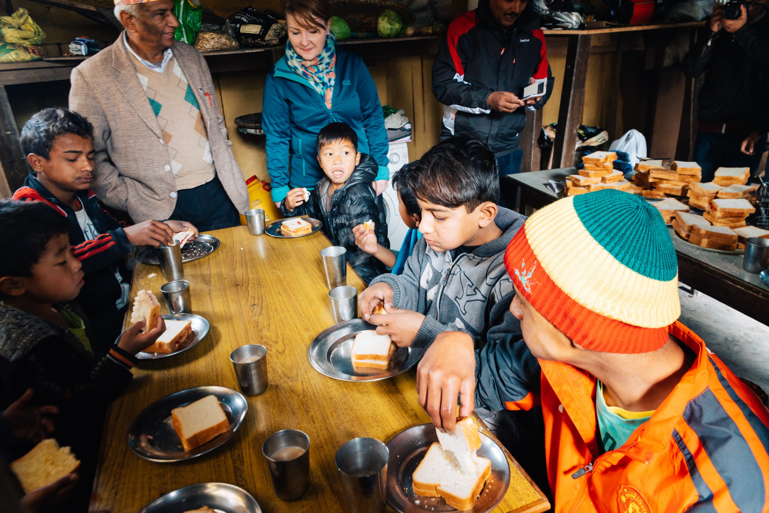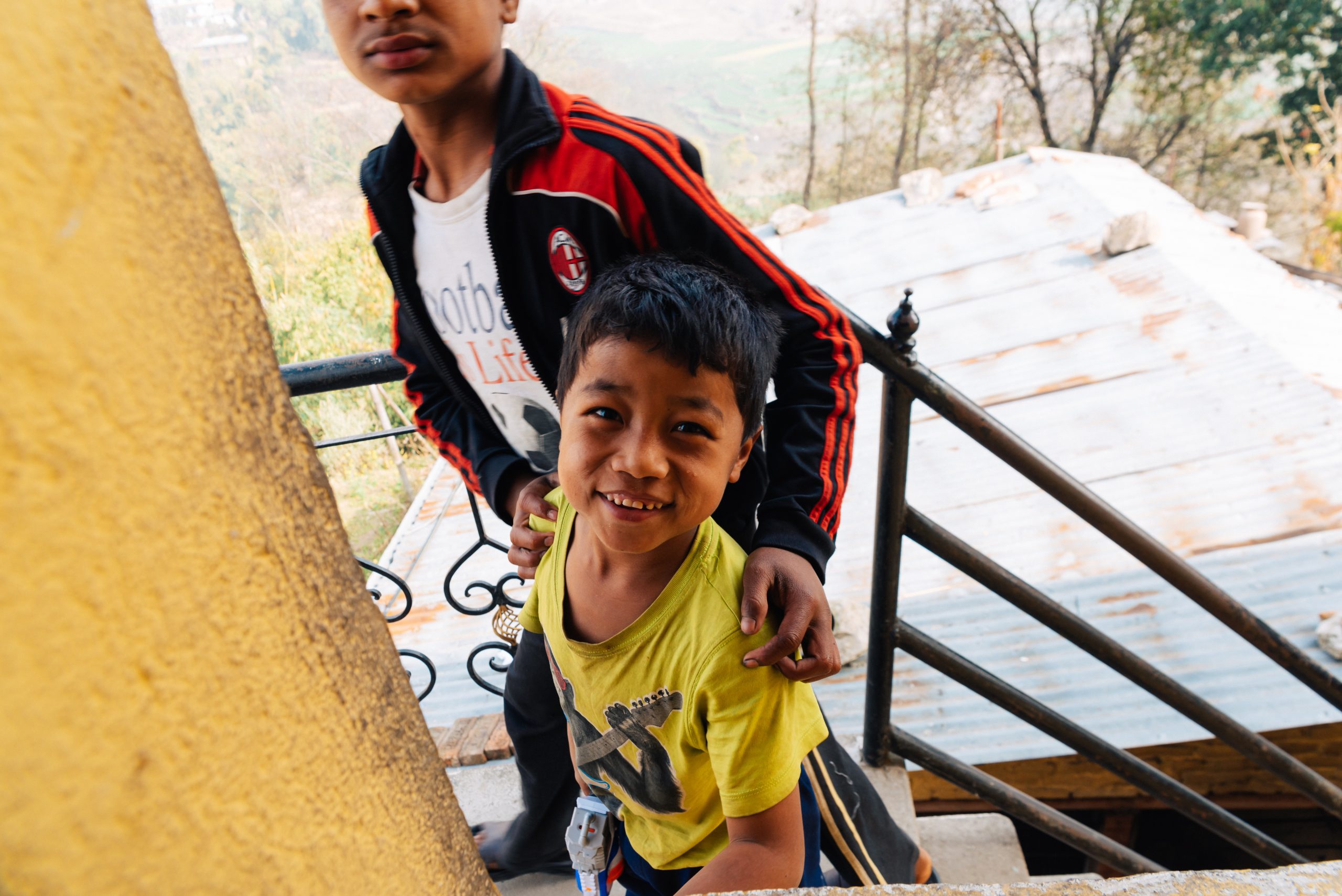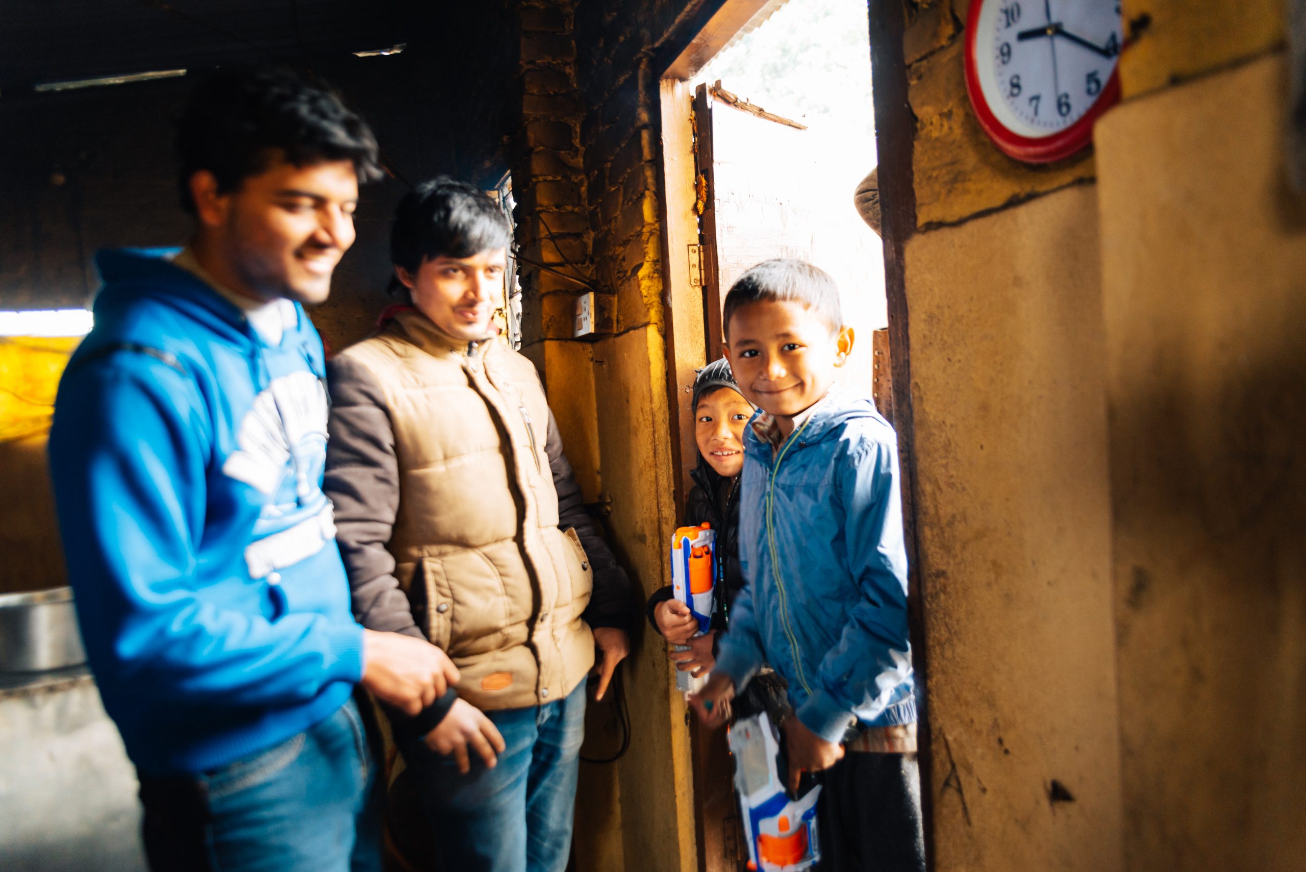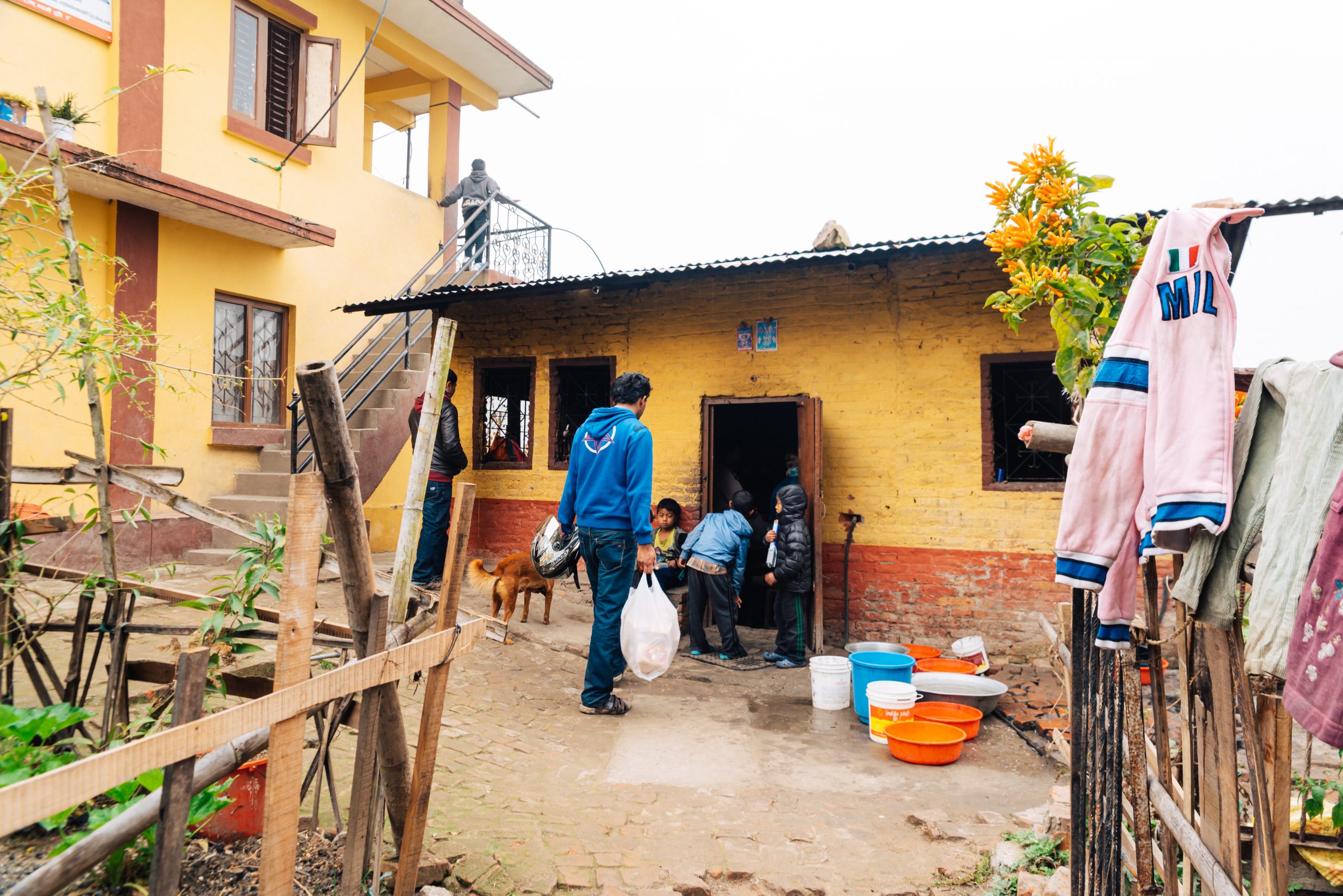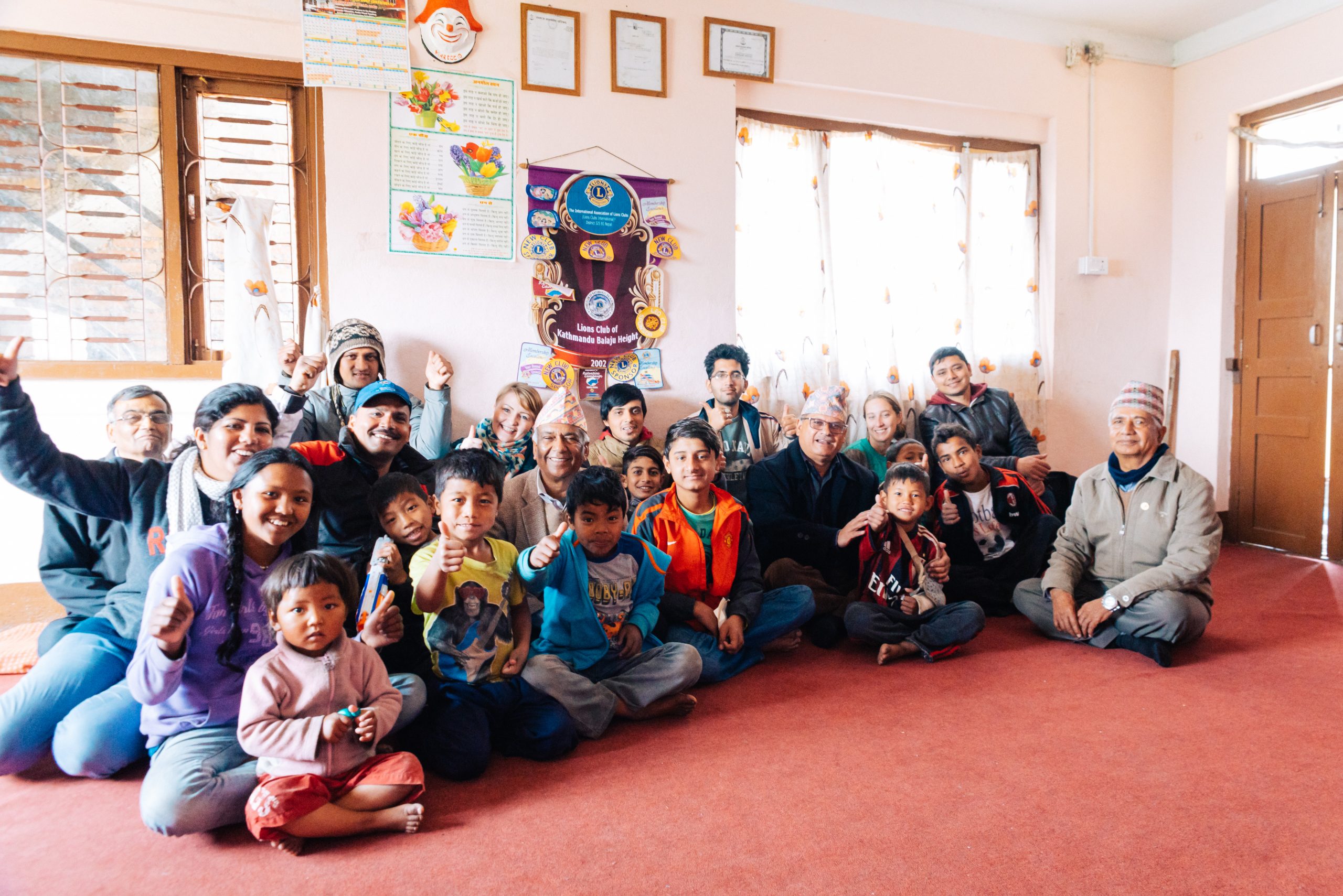 21.2.2015 – Ein langer und ereignisreicher Tag wartet auf uns, aber alles von Anfang an: Um 7 Uhr morgens wurden wir von einem LEO Freund und dem Fahrer, der uns während unserer Reise zur Verfügung stand, vom Hotel abgeholt. Sie brachten uns zum Club-Haus des LEO Club Kathmandu Height. (facebook-page). Heutige Acitivty: Frühstück in einem Waisenhaus vorbereiten und mit den Kindern vor Ort spielen und Zeit verbringen. Also ging’s nach kurzer Projektbesprechung ab in einen nahegelegenen Supermarkt um Brot, Butter, Marmelade, Eier und natürlich Süssigkeiten zu kaufen. Danach im Schritttempo durch die buckeligen und zum Großteil kaum befahrbaren Straßen der Vororte von Kathmandu hinauf in eine am Berg gelegene Siedlung. Ein kleiner Fußmarsch brachte uns dann zum Waisenheim, wo schon weitere Mitglieder des LEO Clubs warteten.