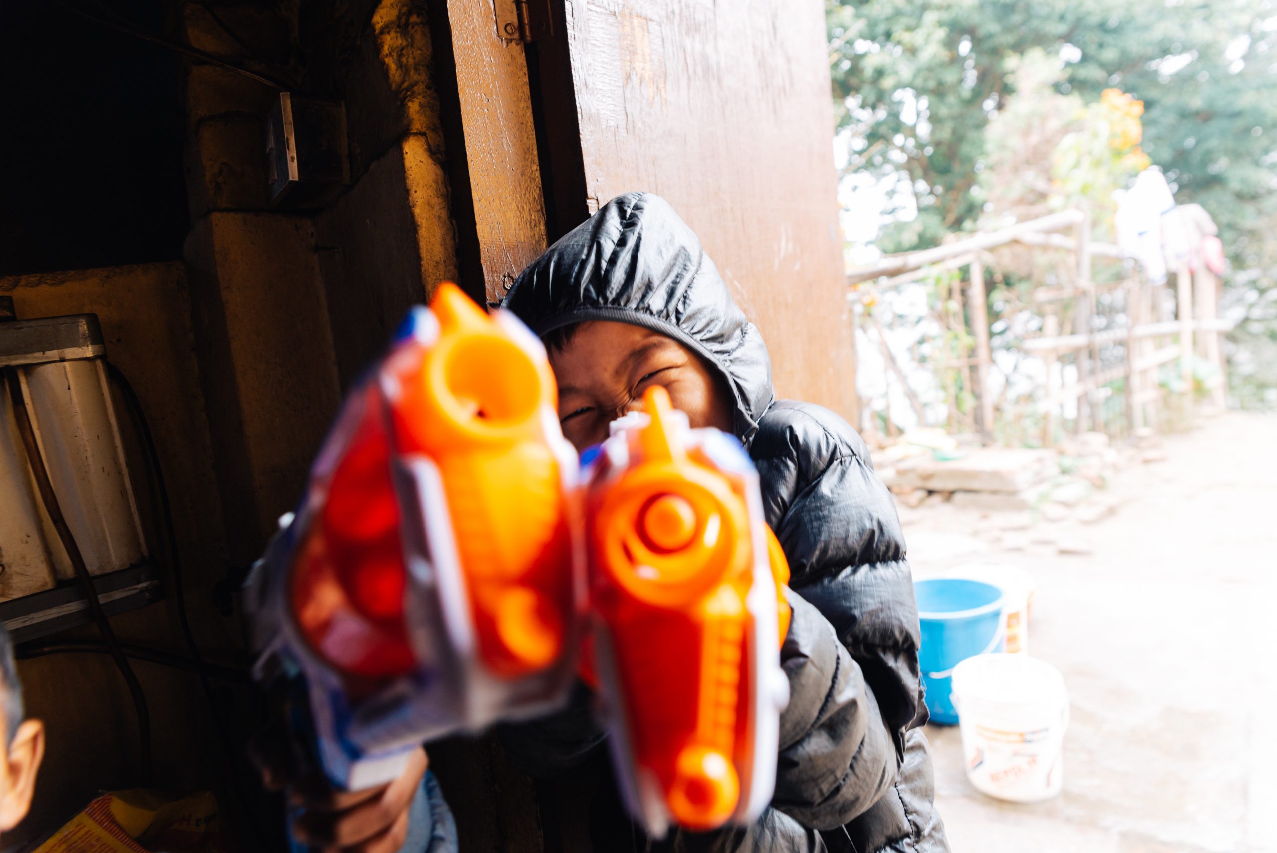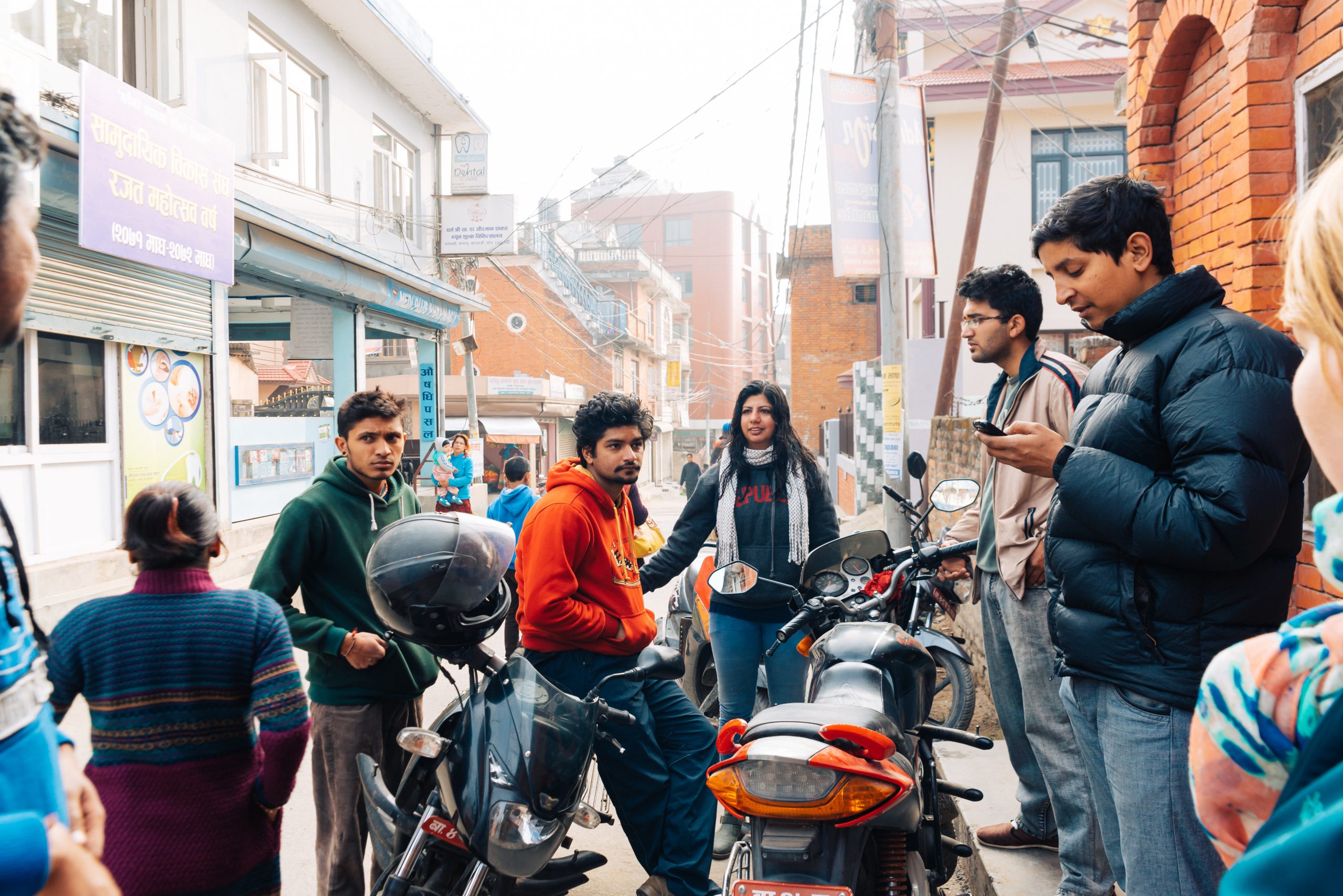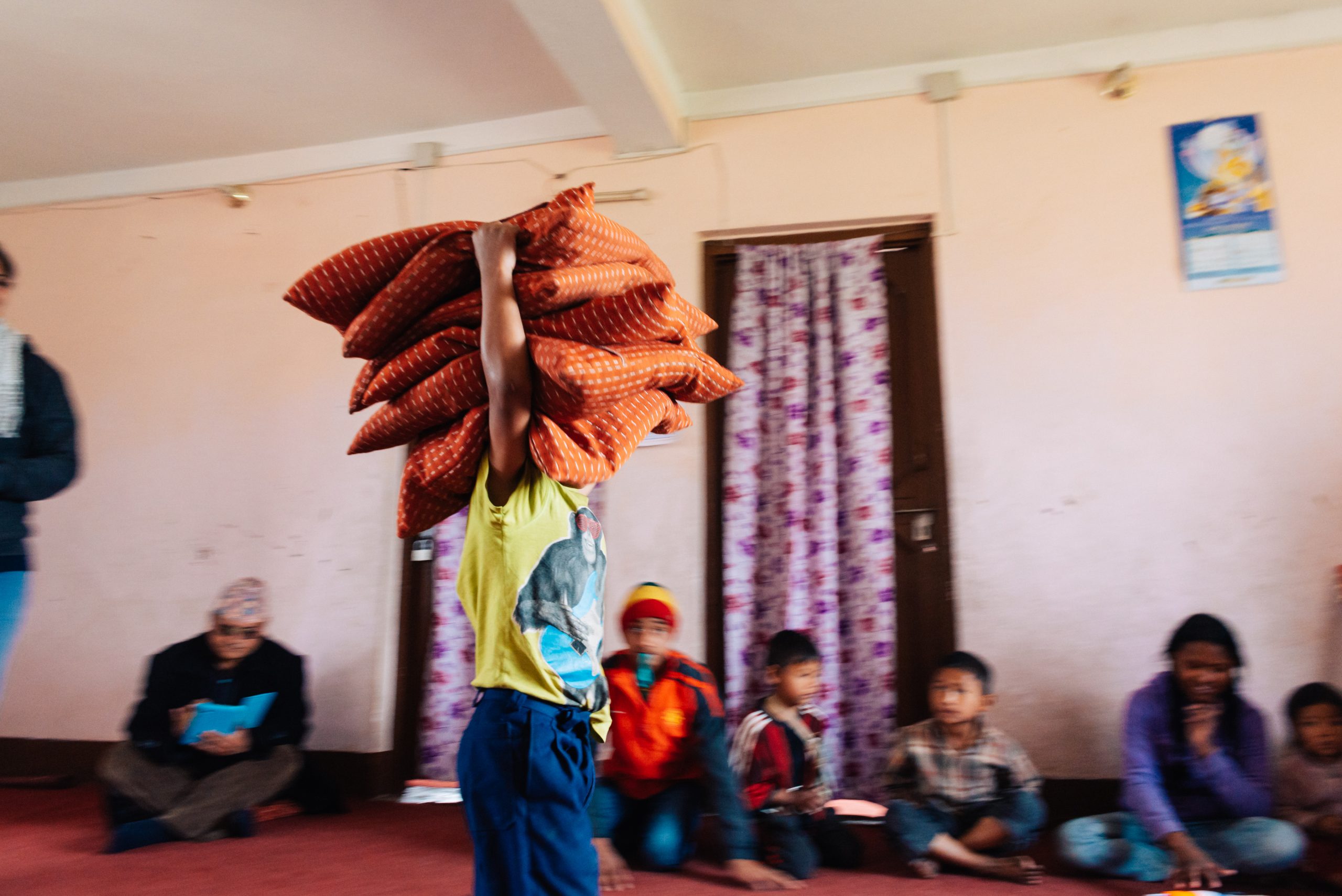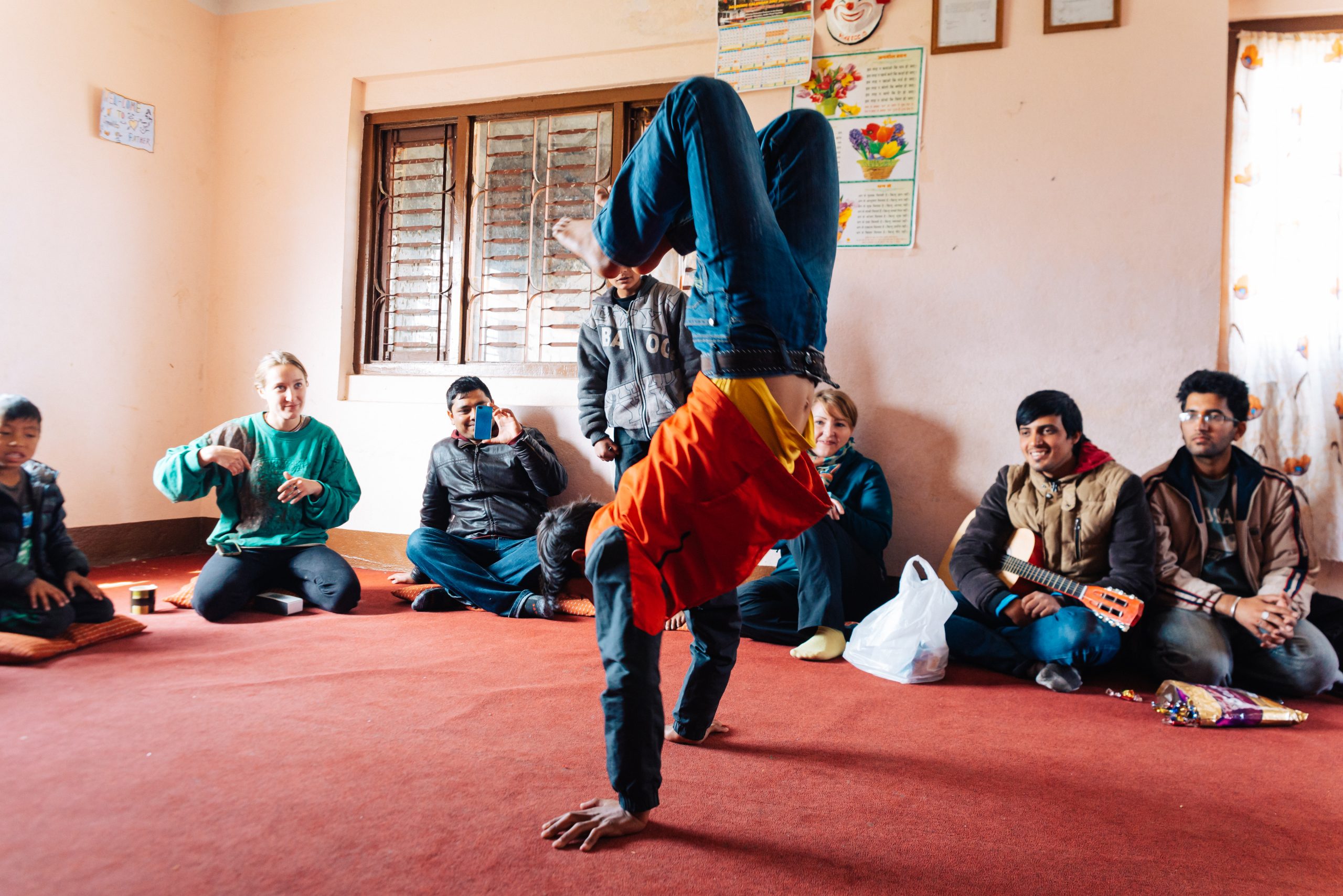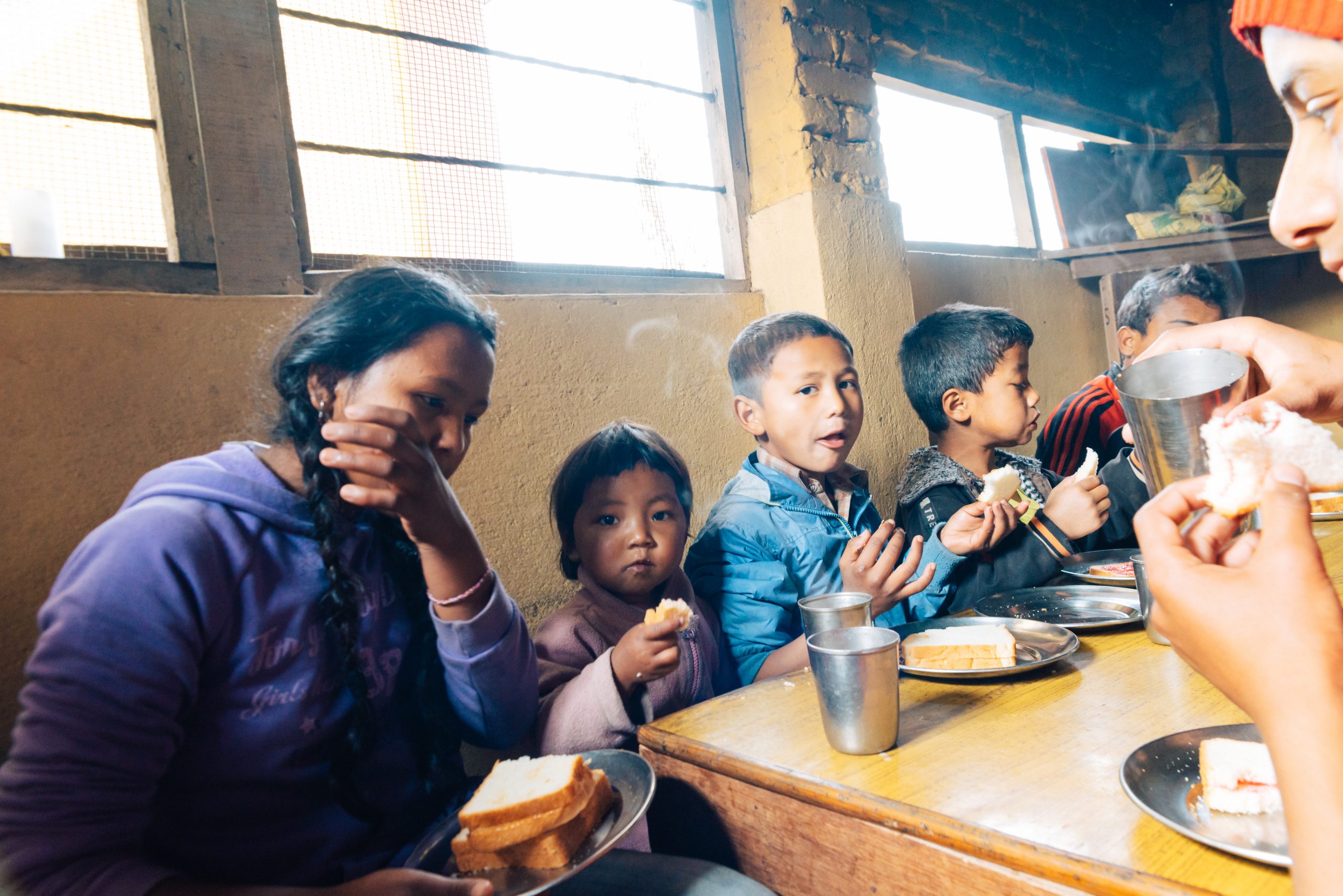 21.2.2015 – Ein langer und ereignisreicher Tag wartet auf uns, aber alles von Anfang an: Um 7 Uhr morgens wurden wir von einem LEO Freund und dem Fahrer, der uns während unserer Reise zur Verfügung stand, vom Hotel abgeholt. Sie brachten uns zum Club-Haus des LEO Club Kathmandu Height. (facebook-page). Heutige Acitivty: Frühstück in einem Waisenhaus vorbereiten und mit den Kindern vor Ort spielen und Zeit verbringen. Also ging’s nach kurzer Projektbesprechung ab in einen nahegelegenen Supermarkt um Brot, Butter, Marmelade, Eier und natürlich Süssigkeiten zu kaufen. Danach im Schritttempo durch die buckeligen und zum Großteil kaum befahrbaren Straßen der Vororte von Kathmandu hinauf in eine am Berg gelegene Siedlung. Ein kleiner Fußmarsch brachte uns dann zum Waisenheim, wo schon weitere Mitglieder des LEO Clubs warteten.