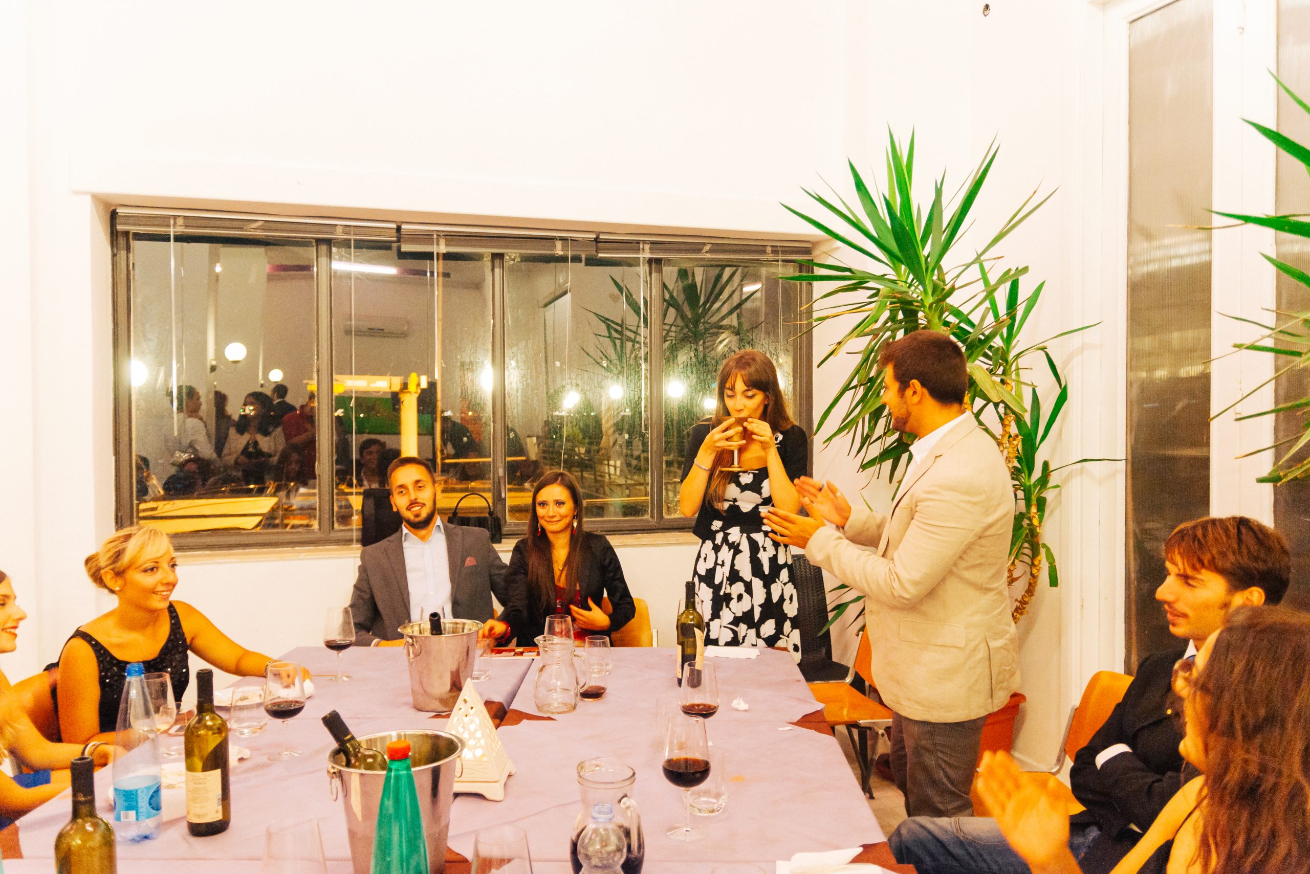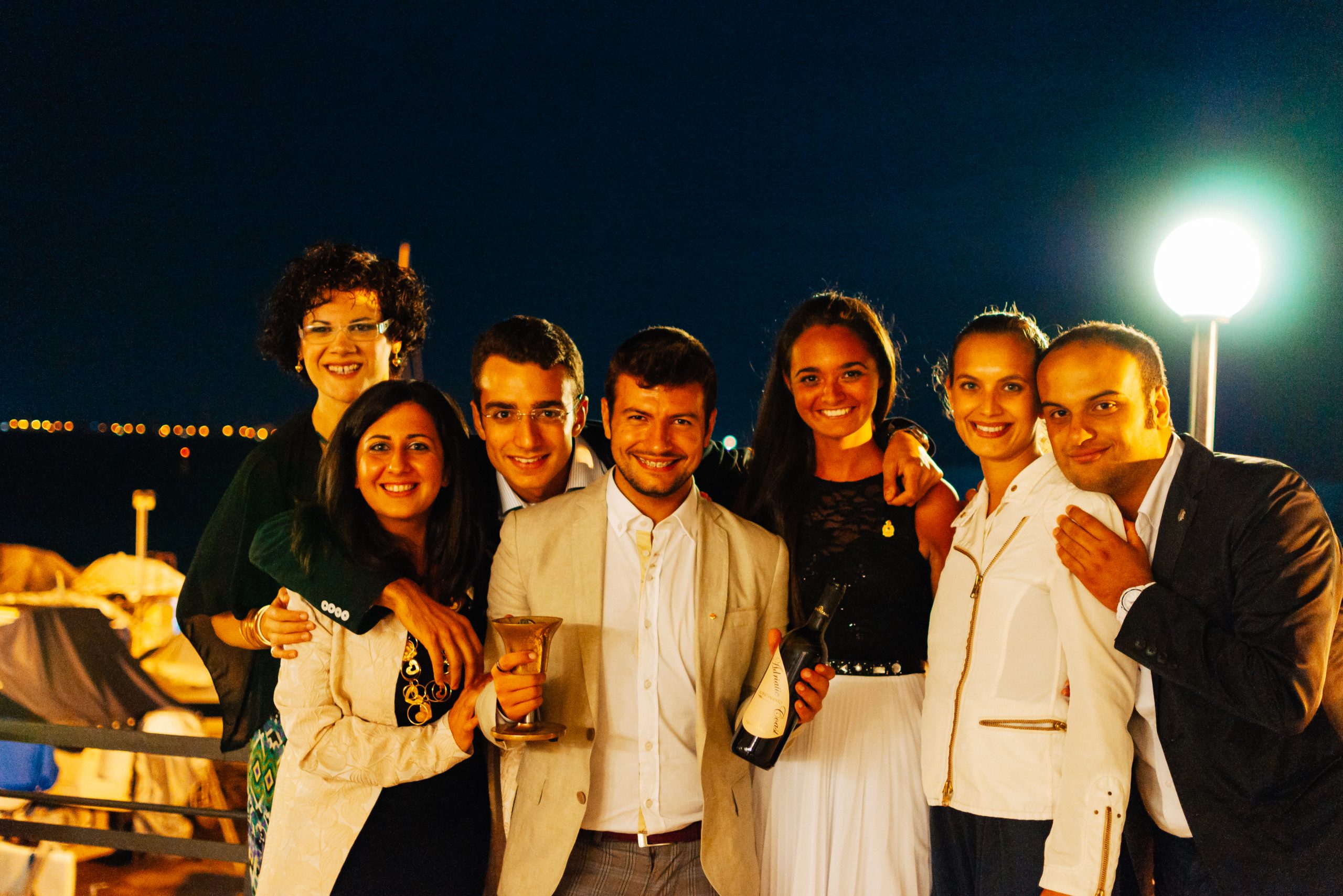 Taranto liegt etwa 30km von Massafra entfernt und ist eine von Nordafrika beeinflusste Hafenstadt. Dort war ich zu einer s.g. Charter-Night eingeladen, in der das neue Clubjahr gefeiert wurde. Neue Mitglieder wurden in den Club aufgenommen und der Vorstand hat den Vorsitz gewechselt. Dort habe ich auch eine neue Tradition kennengelernt: der LEO-Gong wird zu einem Kelch umfunktioniert und mit Wein aufgefüllt. Der neue Präsident muss dann den Wein auf ex trinken und den Kelch umdrehen. Sobald ein Tropfen auf das Tischtuch tropft, wird der Kelch wieder aufgefüllt und das Spiel startet von Neuem.