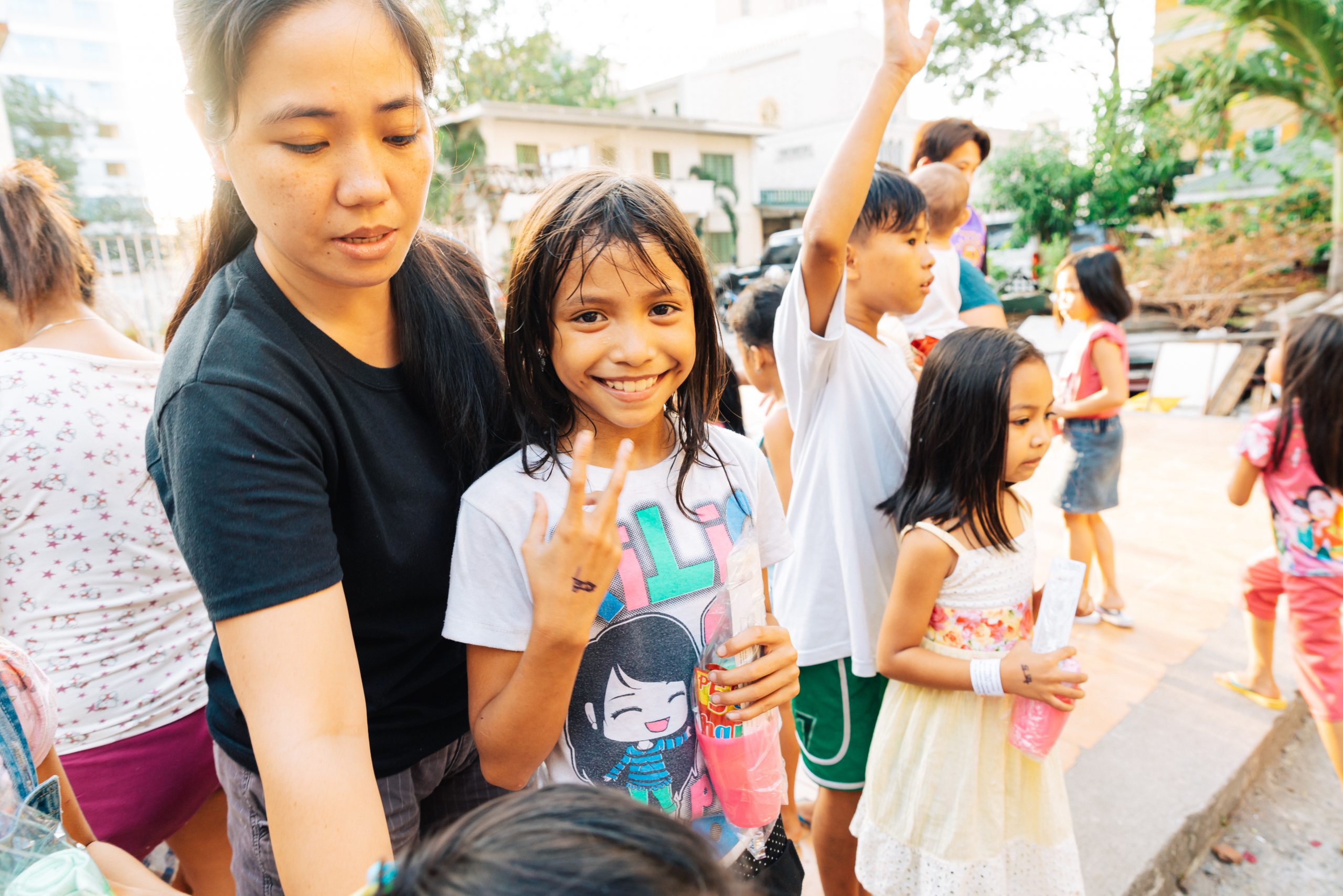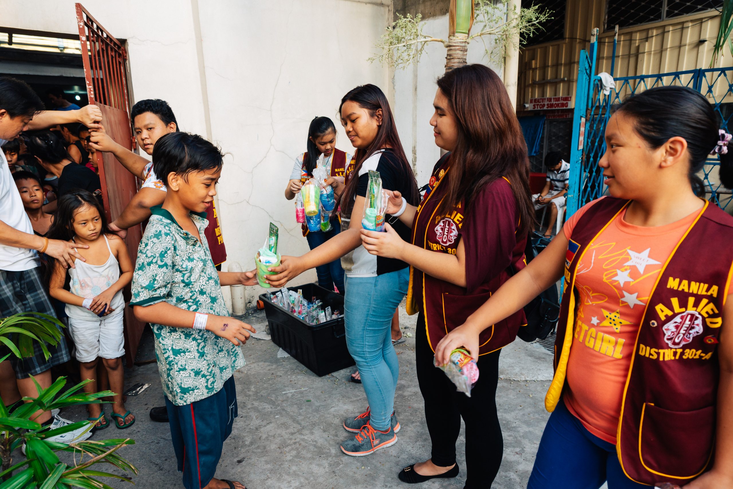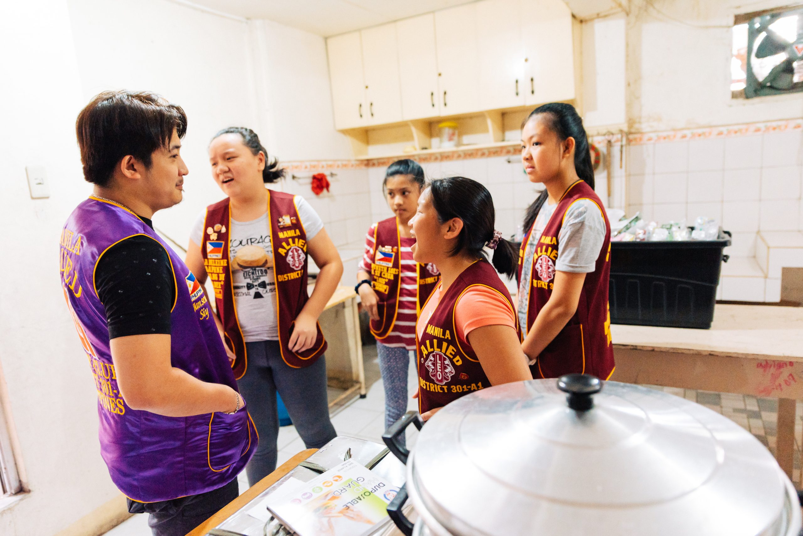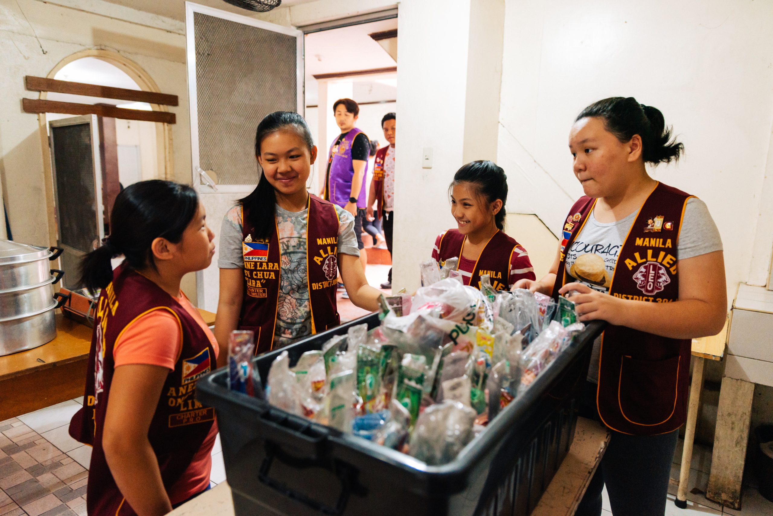 Manila. So genannte alpha LEOs sind Jugendliche im Alter von 12 bis 18 Jahren und somit die jüngsten in der Lions Familie. Gemeinsam mit LEOs und Lions haben sie Essen und Hygiene-Artikel in ein katholisches Tagesheim gebracht und dort verteilt. Während die einen das Essen zubereitet haben, unterhielten die Anderen die wartenden Kinder mit Spielen und gemeinsamen Singen.