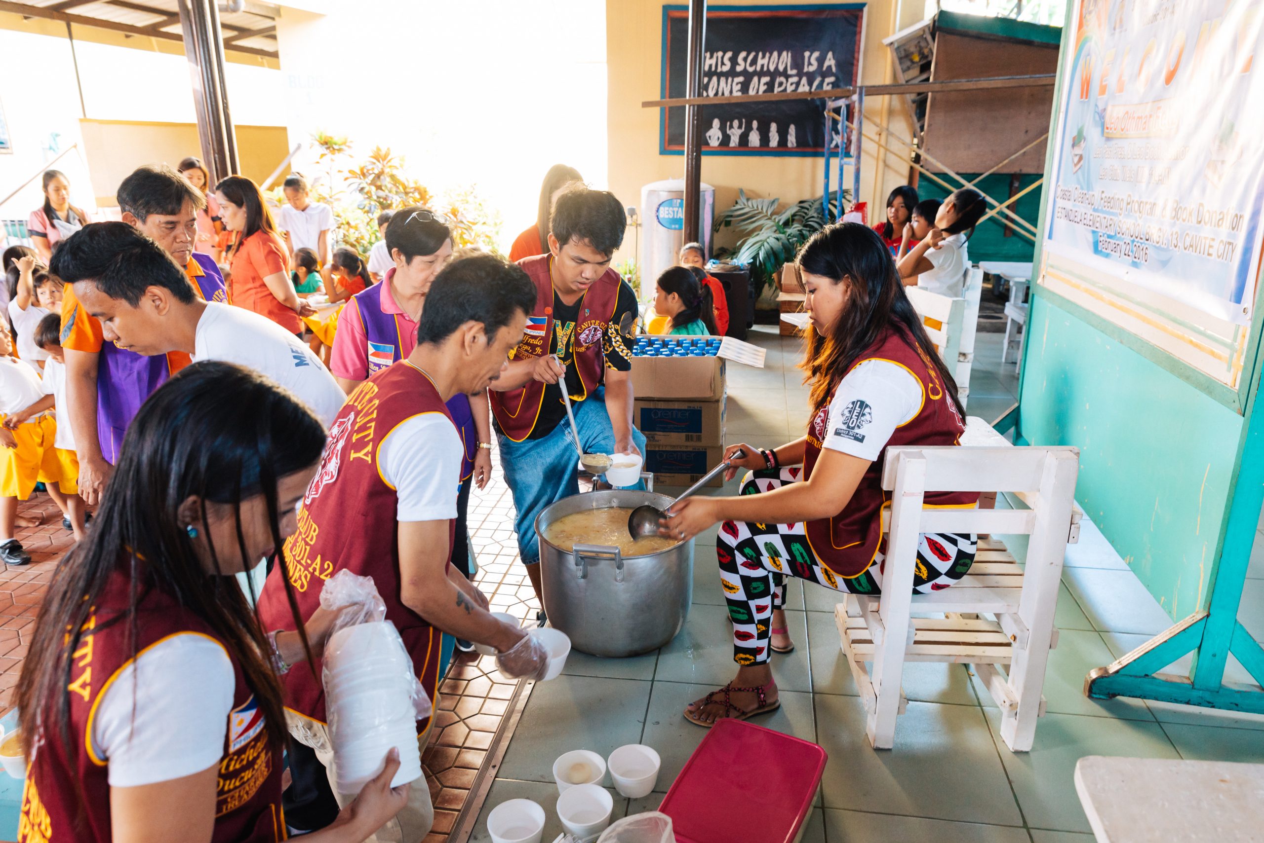 In Cavite, etwa einer Autostunde außerhalb von Manila verbrachte der LEO Club Cavite City Zeit mit den Kindern. Vor Schulbeginn sammelten die Kinder den Müll vom Strand zusammen, der regelmäßig von Ebbe und Flut an Land gespült wird. Es ist herzzerreißend zu sehen, wie die Kinder ohne Schutz den Müll mit ihren bloßen Händen wegräumen.