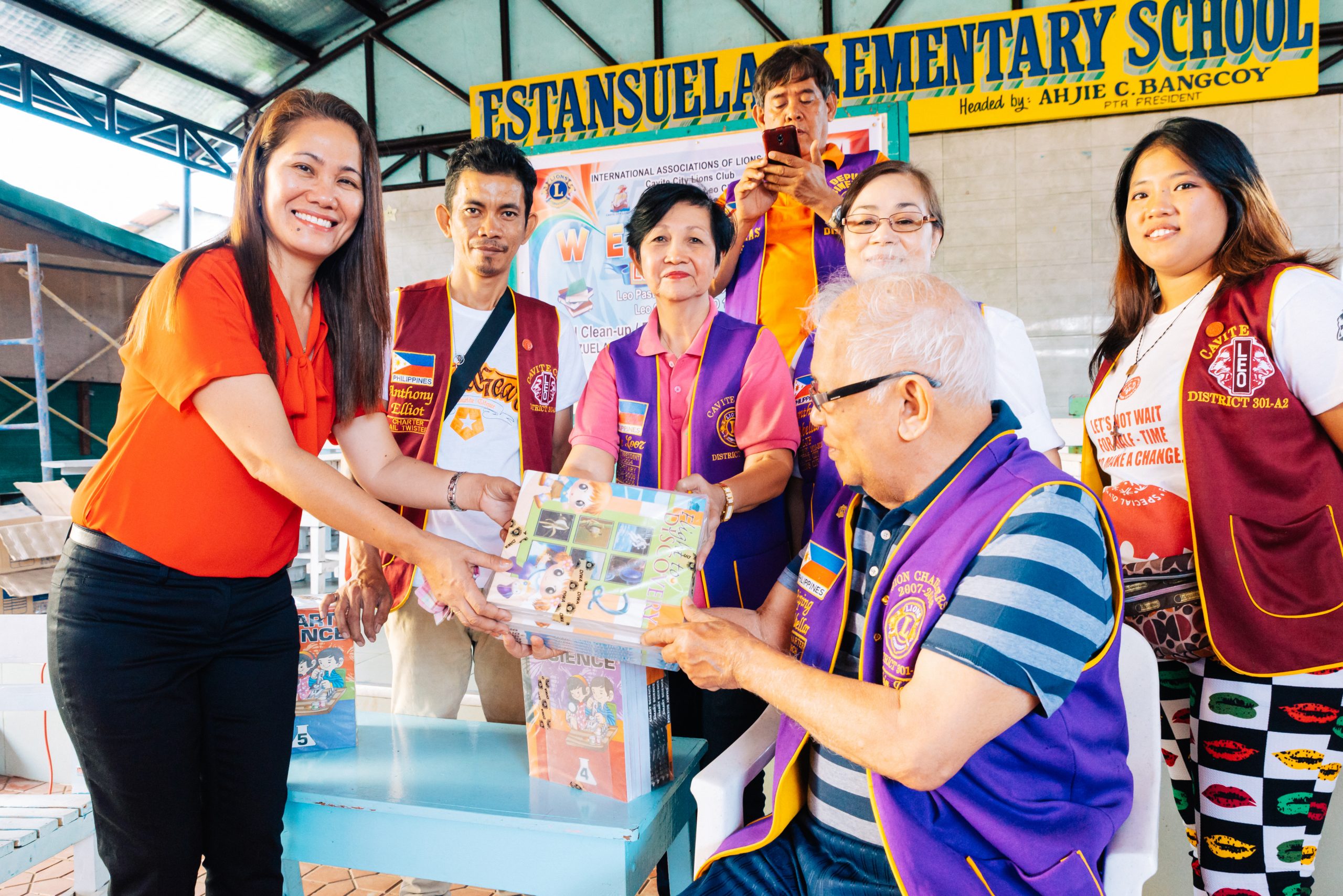 Nach rund einer Stunde ging es weiter in die Schule, wo die LEOs und Lions gemeinsam Bücher an die Schule spendeten und mitgebrachtes Essen verteilt.