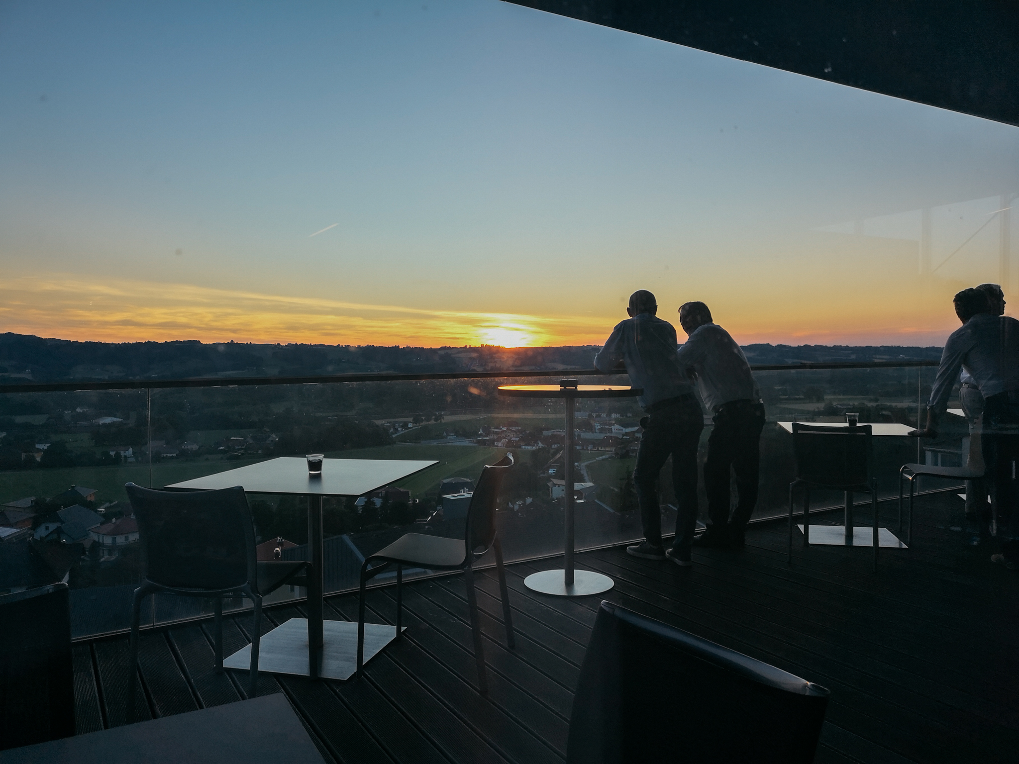 Bei herrlichem Wetter konnten wir die verschiedenen Käste vom Stift Schlierbach begleitet mit Wein aus Kremsmünster genießen