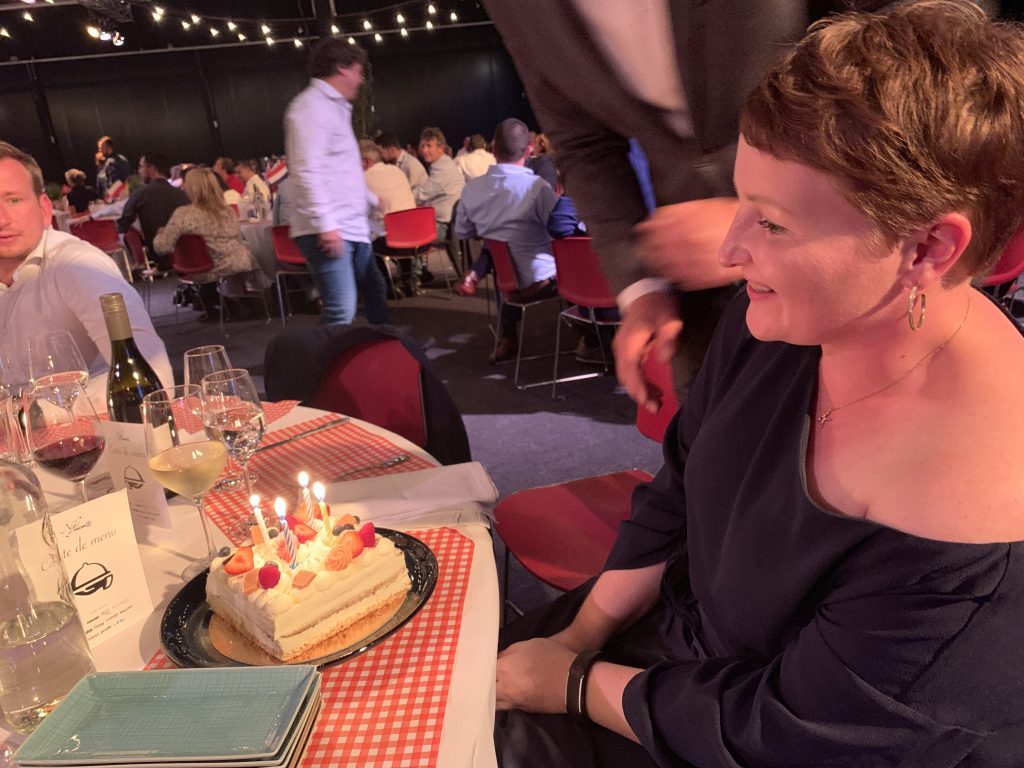 Als kleine Überraschung gab es für Karoline dann noch eine Geburtstagstorte vom Veranstalter. Wenn man schon an seinem Geburtstag arbeitet, darf man am Abend auch feiern 🙂
