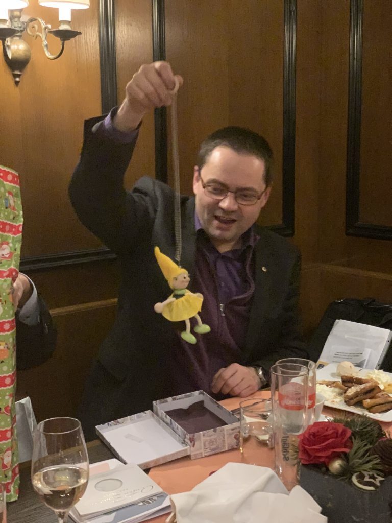 Darum gabs dieses mal Schrottwichteln als Auflockerung. Jeder nimmt ein kleines Geschenk mit, dann wird im Kreis gewürfelt. Hat jemand eine sechs, darf er bzw. sie sich ein Päckchen nehmen. Dies geht so lange bis jeder ein Geschenk hat. Danach wird noch einige Runden weitergewürftelt. Hat jemand eine weitere sechs, darf er oder sie das Geschenk mit jemand anderen am Tisch tauschen.